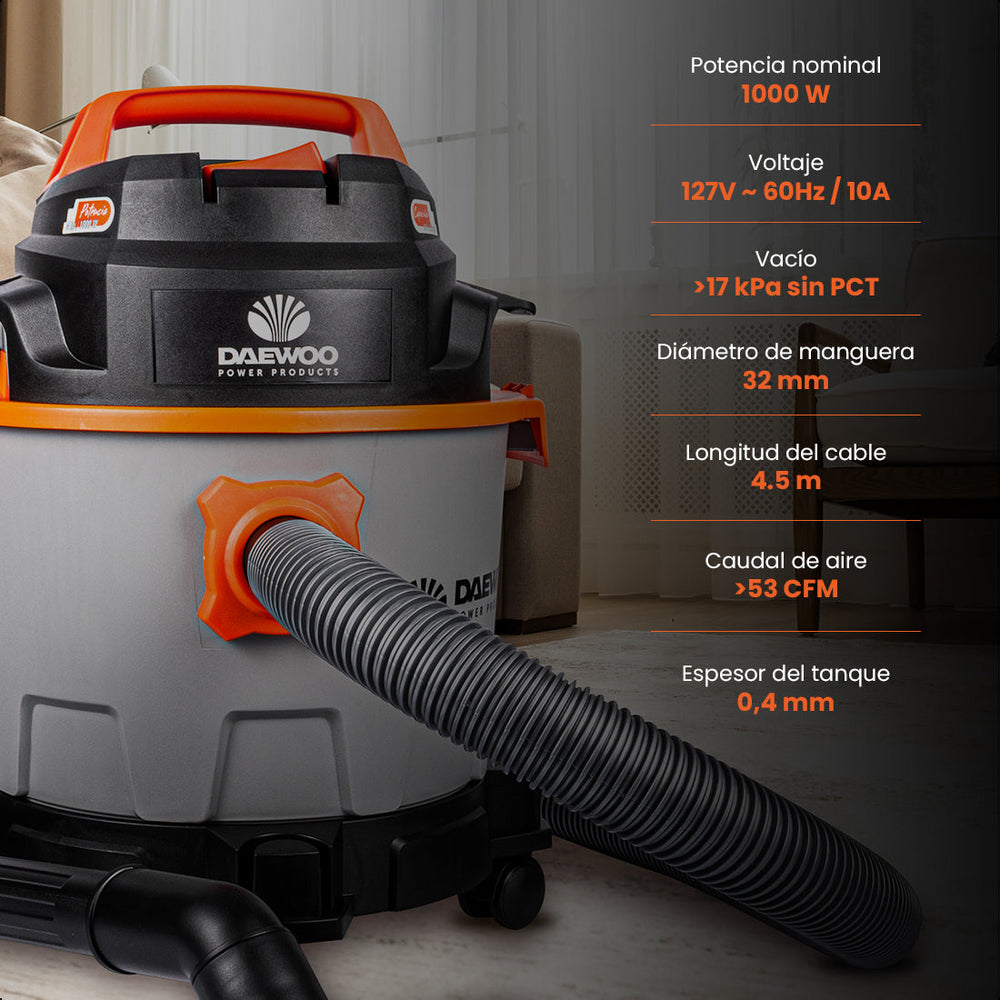 La aspiradora Daewoo DAVC90-10L es la solución ideal para mantener tus espacios limpios y frescos. Con un potente motor de 1000W y una capacidad de 10 litros, es perfecta para aspirar tanto polvo como líquidos.