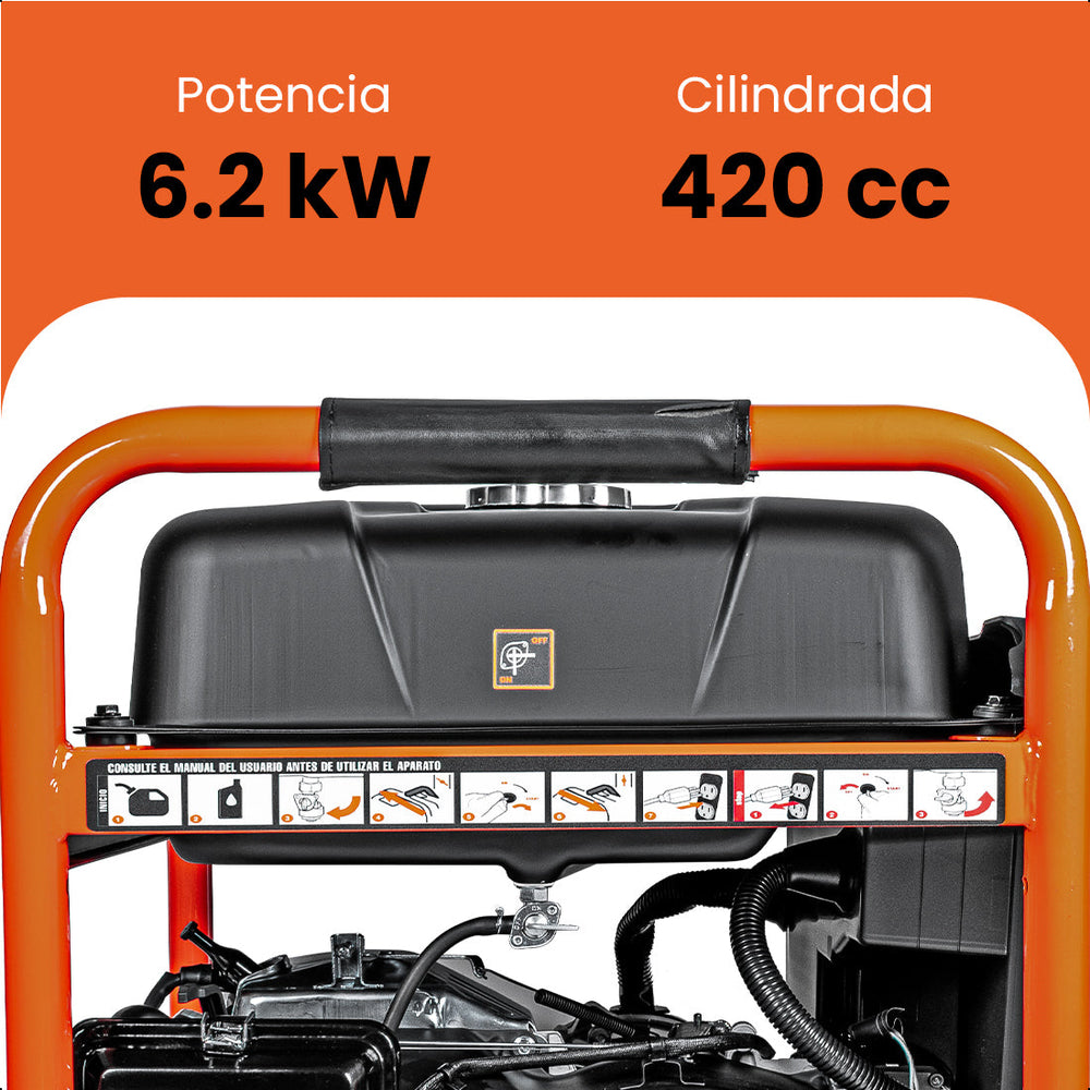 El generador a gasolina Daewoo GDA6500K-ED es la solución ideal para quienes buscan potencia y confiabilidad en sus proyectos. Con una potencia máxima de 6.2 kW, este generador es perfecto para uso doméstico, eventos al aire libre o como respaldo en situaciones de emergencia. Su motor de 420cc garantiza un rendimiento eficiente, permitiendo un funcionamiento continuo y estable.