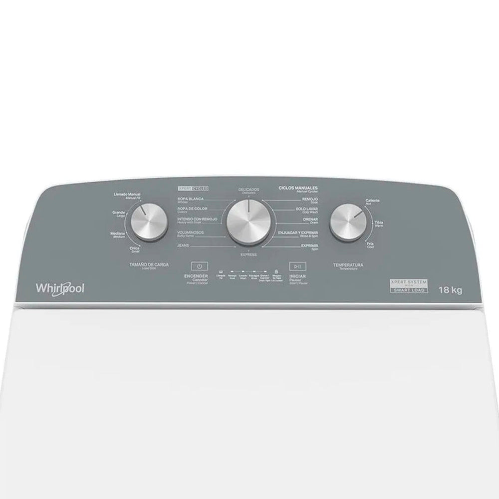 • Lavadora Carga Superior de 18 kg color blanco con Chrome Shadow