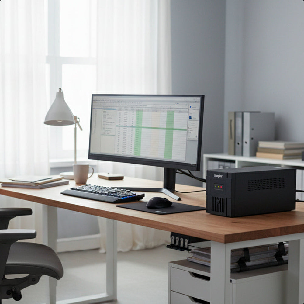 El No Break UPS ENERGIZER 1500VA / 900W ofrece hasta 60 minutos de respaldo con batería 12V 9Ah, ideal para proteger computadoras, routers y equipos electrónicos. Cuenta con 8 contactos (4+4), puerto USB y protección contra sobretensiones de 208 Joules. Su rango de entrada de 89-145V y materiales HPS + PC garantizan durabilidad y seguridad. Perfecto para uso en hogar u oficina, brinda potencia, estabilidad y confianza ante cualquier corte de energía.