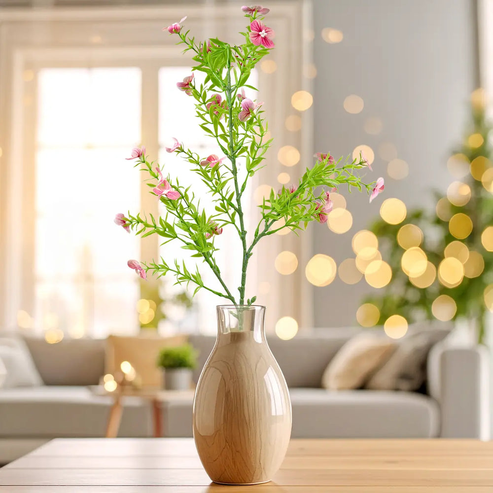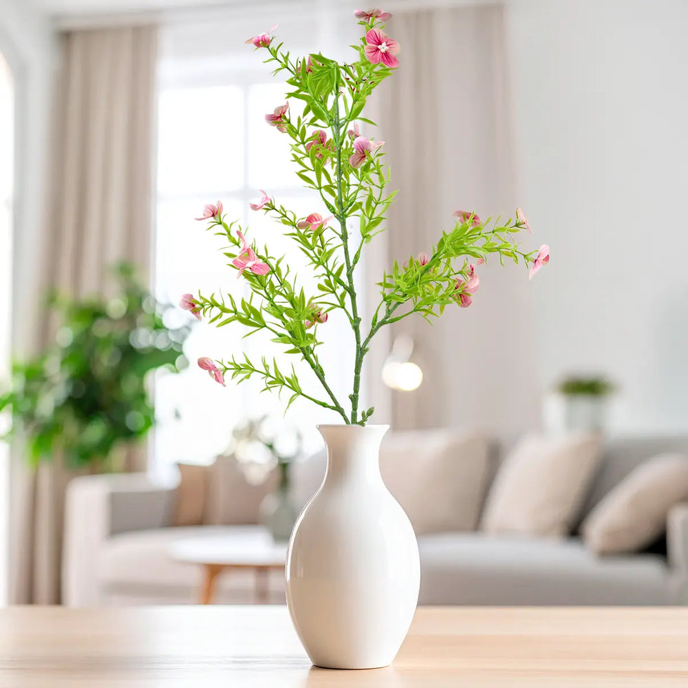 Rama de Follaje Artificial con Flores, Color Rosa