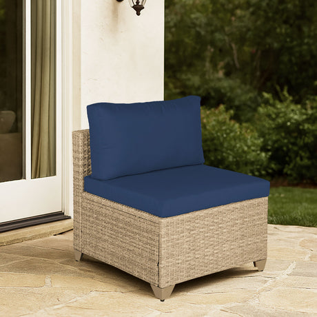 Sofá sin Brazos para Exteriores en Mimbre Envejecido con Cojines