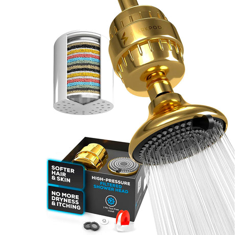 Cabezal de Ducha con Filtro de Alta Presión color Dorado, SparkPod