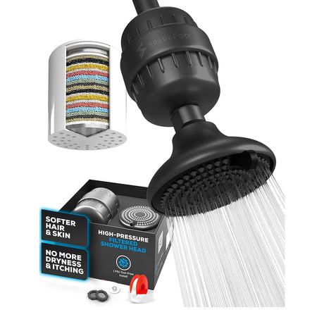 Cabezal de Ducha con Filtro de Agua de Alta Presión color Negro, SparkPod