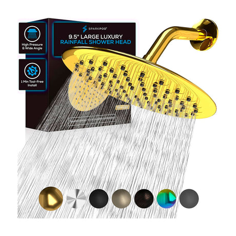 Cabezal de Ducha de Lluvia Grande color Oro, SparkPod