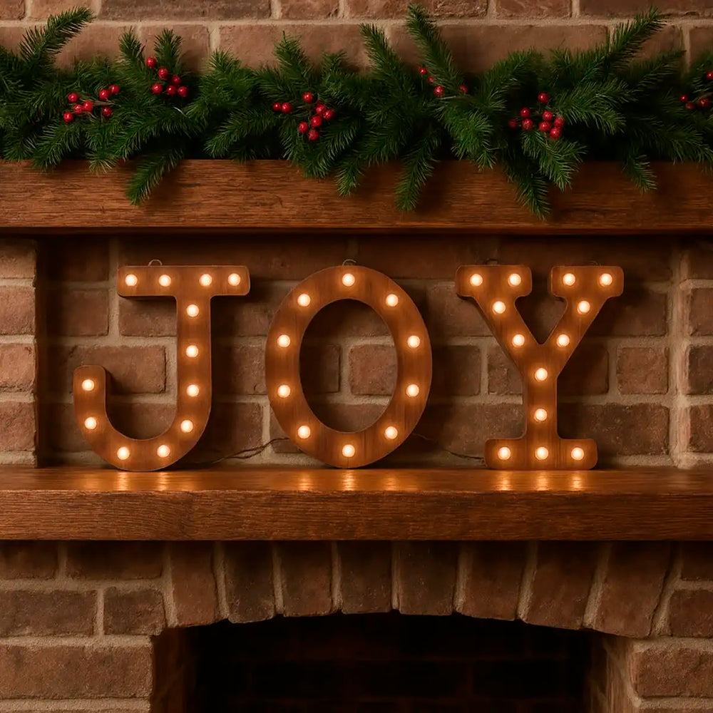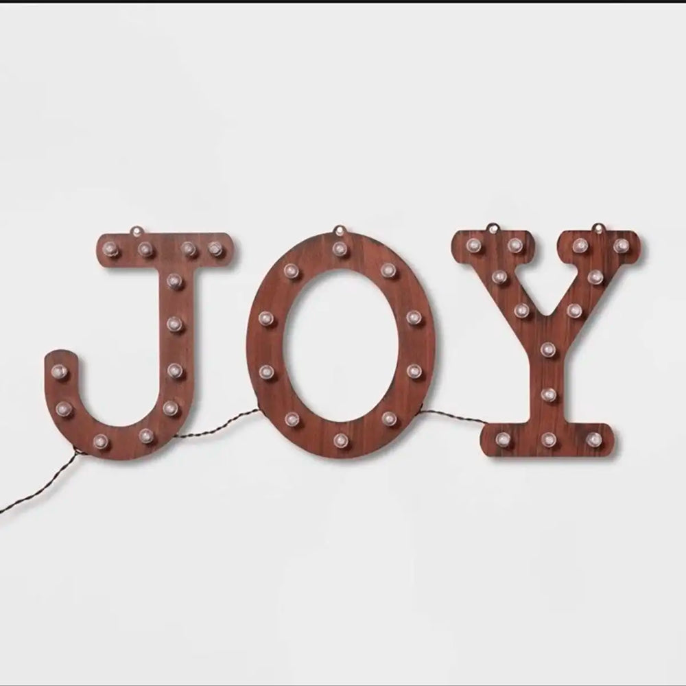 - Incluye 35 luces LED blancas cálidas que iluminan las letras “JOY” para un ambiente acogedor.