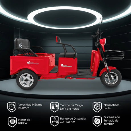 Triciclo de Carga Eléctrico Kiwo, Color Rojo