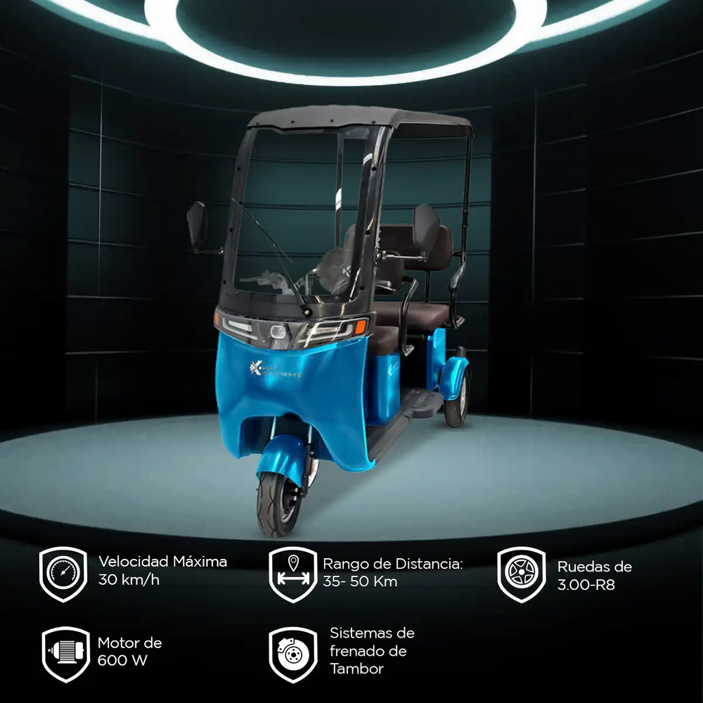 Kiwo, Triciclo Eléctrico con Techo, Modelo BTY002, Color Azul