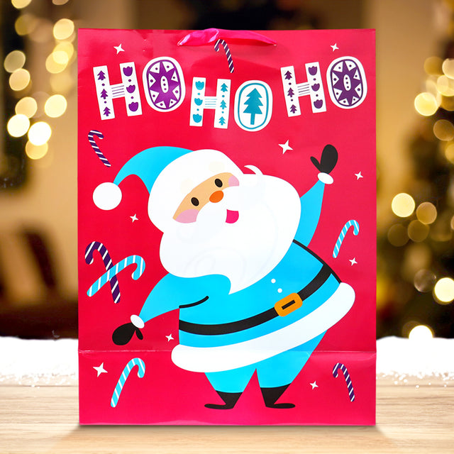 Bolsa de Regalo Navideña Grande, Santa Claus, Color Rosa