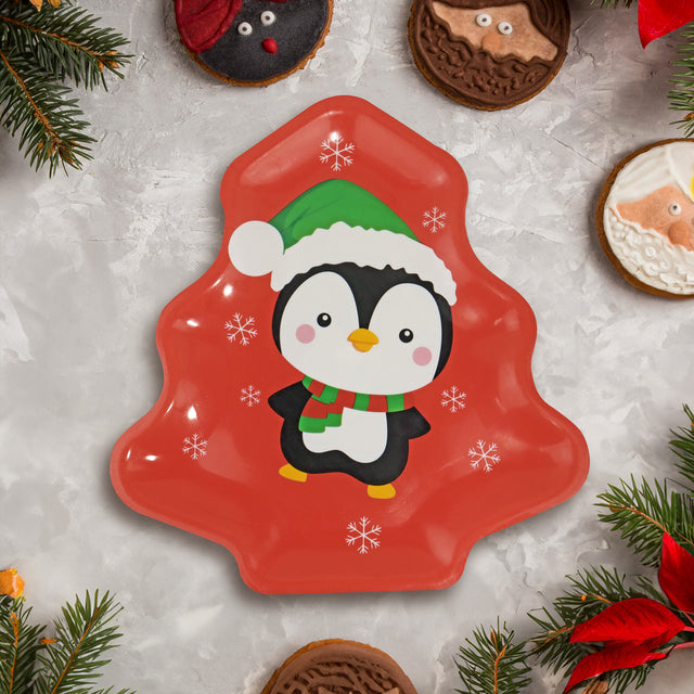 Charola de Plástico en Forma de Árbol Navideño color Rojo