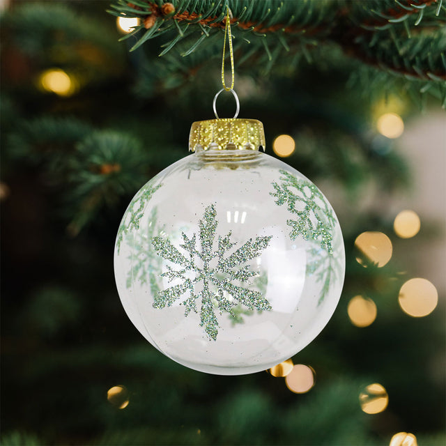 - Esta esfera para adorno de Navidad combina la belleza y el brillo del cristal real con la practicidad irrompible del plástico.