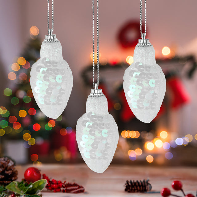 Esferas en Forma de Bombilla con Lentejuelas color Blanco