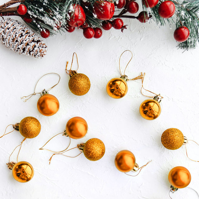 • Contiene 12 esferas navideñas color naranja de 3 cm c/u aproximadamente.