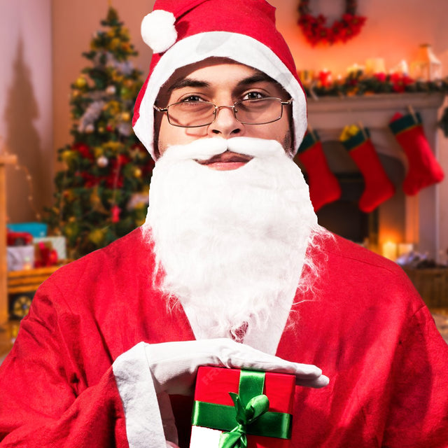 - Añade un poco de diversión a tu decoración navideña. El sombrero y barba de Papá Noel será un gran regalo para tus amigos y familiares.