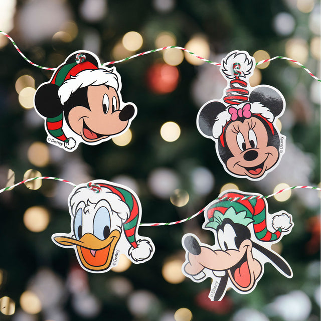 - Dale un toque único y especial a tu hogar en esta temporada navideña con esta fabulosa guirnalda con decoraciones de personajes de Disney como Mickey Mouse, Minnie Mouse, Goofy y Donald.