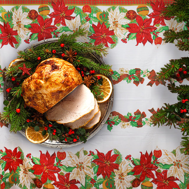 Mantel Navideño, Diseño Nochebuenas, Color Blanco, 2x1.5 m