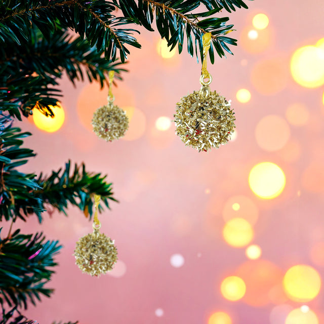 Mini Esferas Navideñas con Glitter, Color Oro, 6 pzas