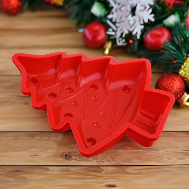 Molde de Silicón color Rojo en Forma de Árbol de Navidad