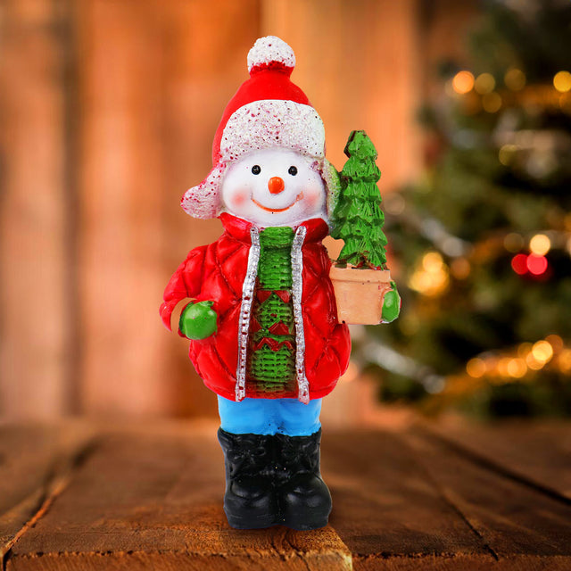 Muñeco de Nieve con Árbol, Figura Decorativa de Cerámica