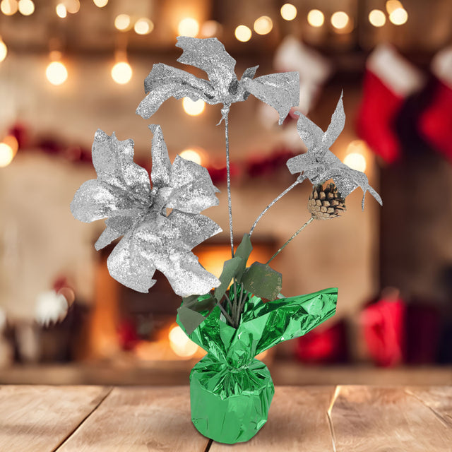 Nochebuena Artificial en Maceta, color Plata/Verde