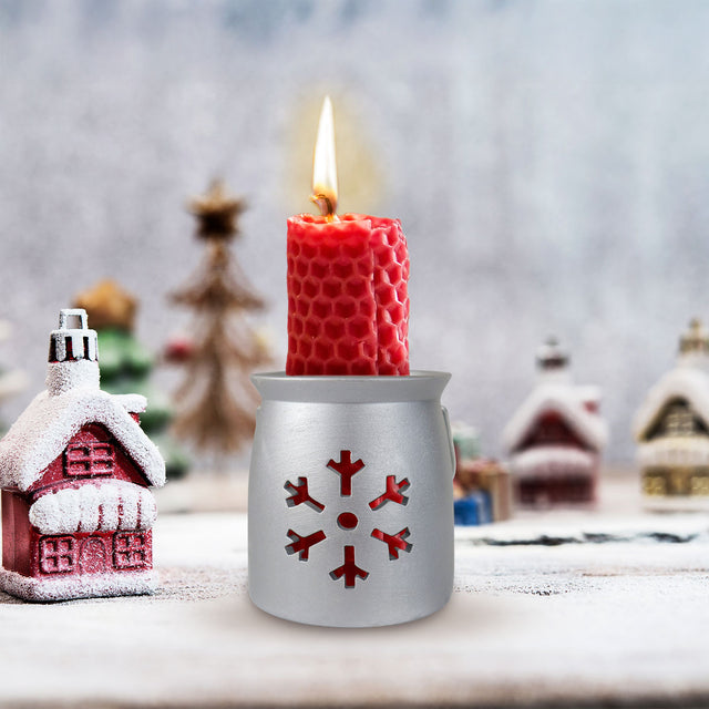 Portavelas, Diseño Copo de Nieve, Cerámica, Color Plata