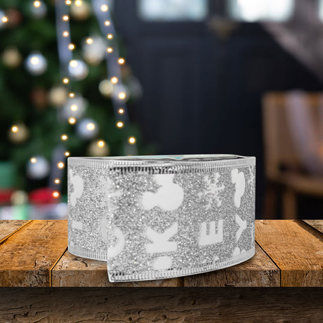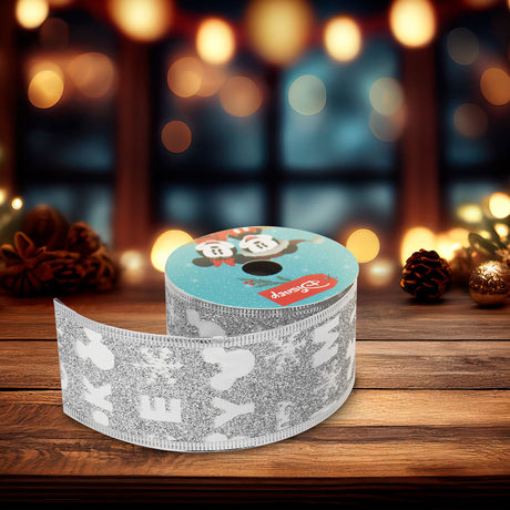 Listón Navideño color Plata Decorativo de Mickey Mouse