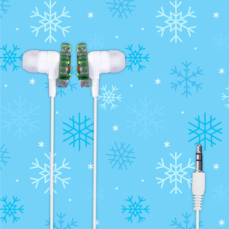 Audífonos Alámbricos color Blanco con Diseño de Árbol Navideño