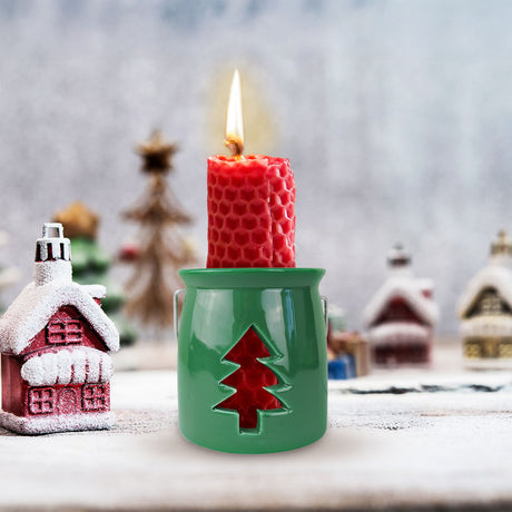 $ 3999Precio unitario /AgotadoPortavelas, Diseño Pino, Cerámica, Color Verde