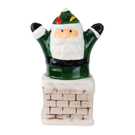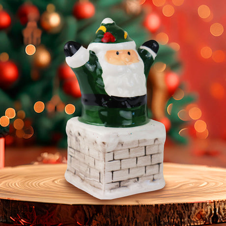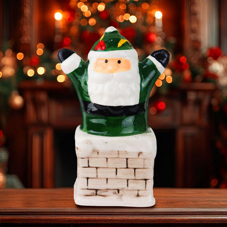 Santa Claus Chimenea, Figura Decorativa de Cerámica, Color Verde