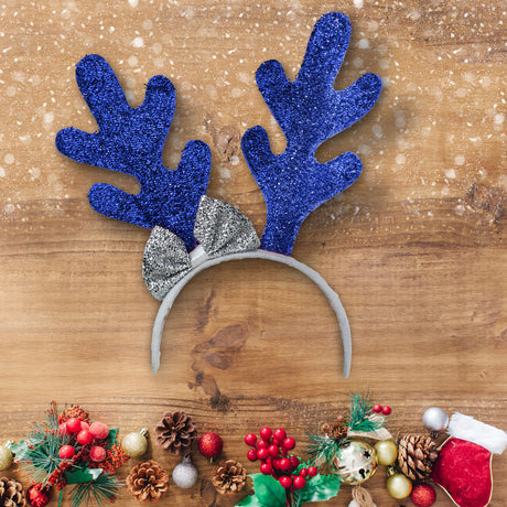 Diadema Navideña con Diseño de Cuernos de Reno color Azul