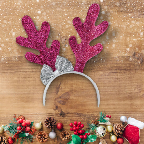 Diadema Navideña con Diseño de Cuernos de Reno color Fucsia