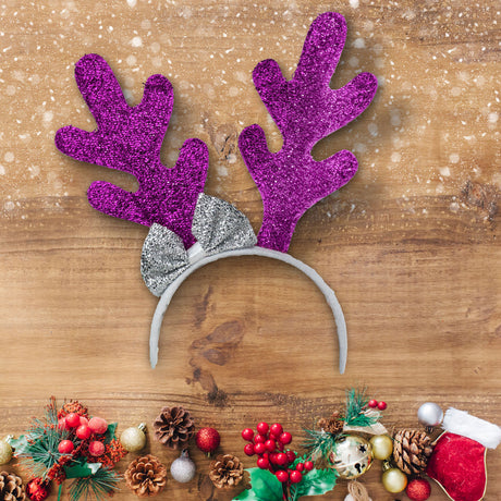 Diadema Navideña con Diseño de Cuernos de Reno color Morado