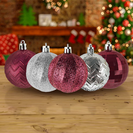 Set de 5 Esferas color Plata/Vino