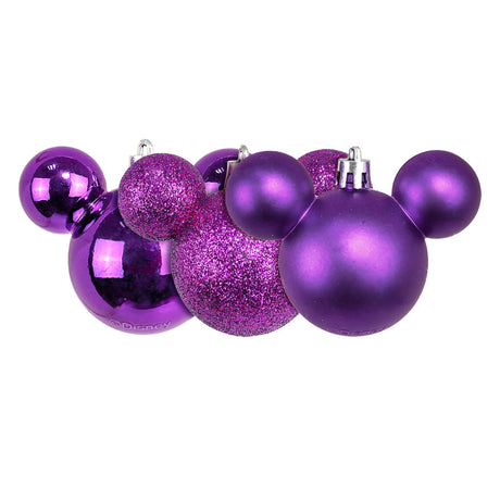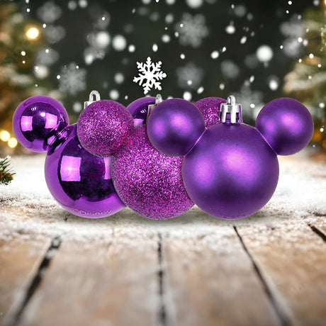 Set de 8 Esferas Navideñas color Morado en Forma de Mickey Mouse