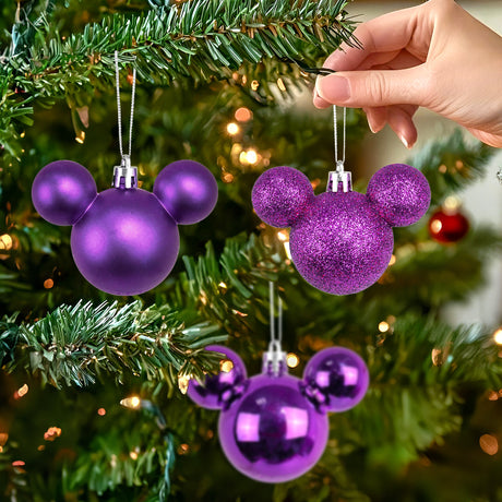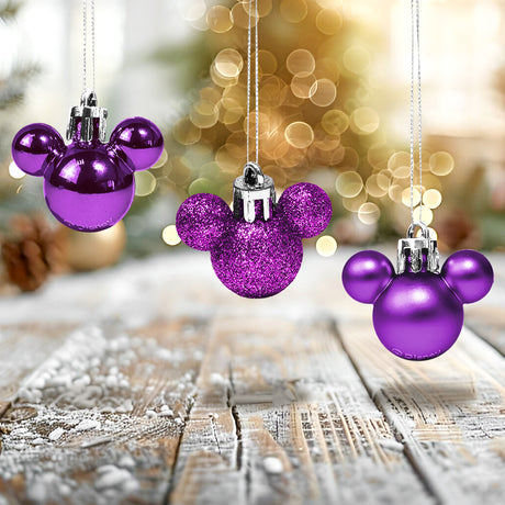 Set de 3 Esferas Navideñas color Morado en Forma de Mickey Mouse