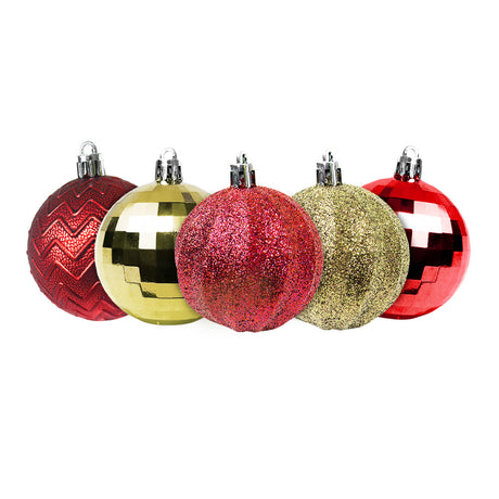 Set de 5 Esferas Navideñas color Rojo/Oro
