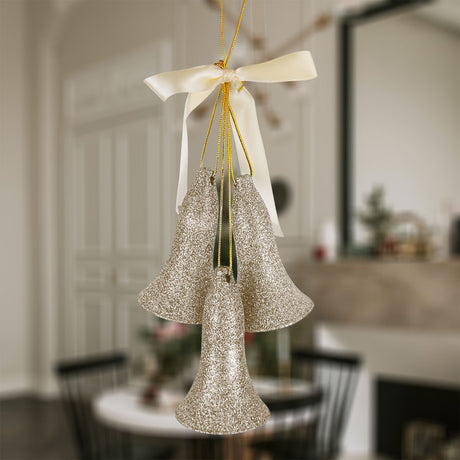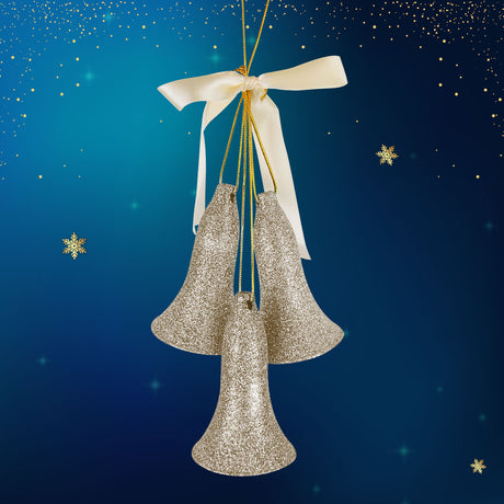 Ornamento Campanas Navideñas, 3 pzas, Color Oro