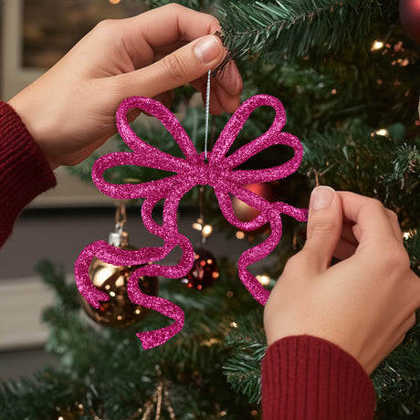 Moño, Decoración Colgante, Glitter, Color Fucsia