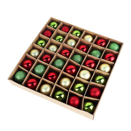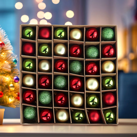 Set de Esferas Navideñas color Verde, Rojo y Plateado, 36pzas