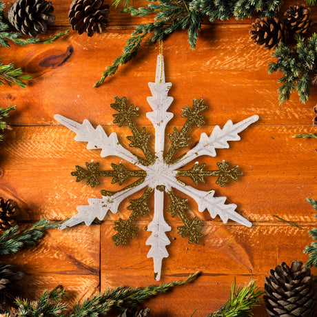 $ 2999Precio unitario /AgotadoCopo de Nieve, Ornamento Navideño con Glitter, Color Dorado
