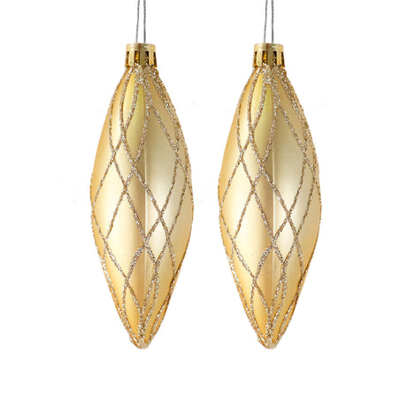 $ 2999Precio unitario /AgotadoEsferas Navideñas con Glitter, Forma Alargada, Color Oro, 2 pzas