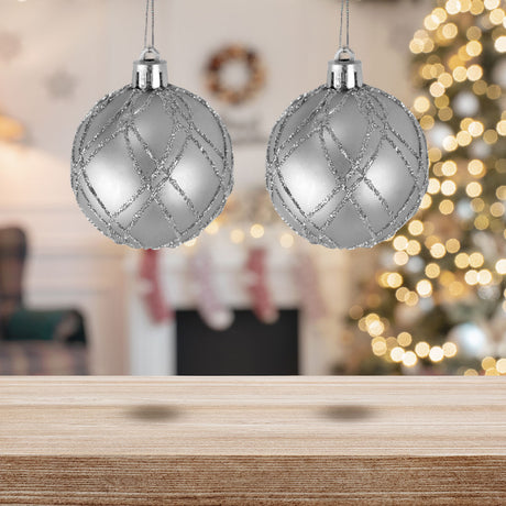 $ 2999Precio unitario /AgotadoPoca disponibilidad (6 unidades)Esferas Navideñas con Glitter, Color Plateado, 2 pzas