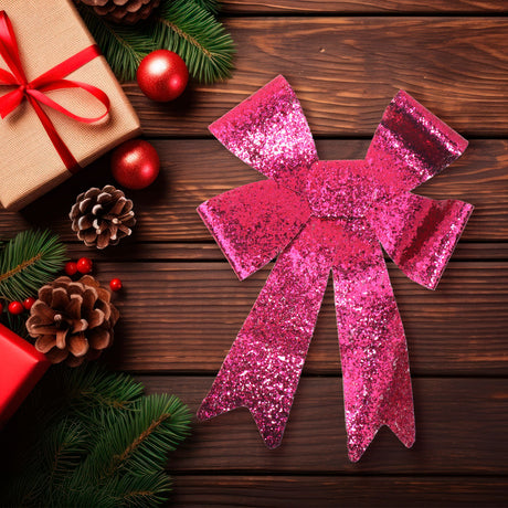 Set de 2 Moños Navideños con Diamantina color Fucsia