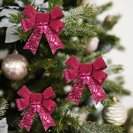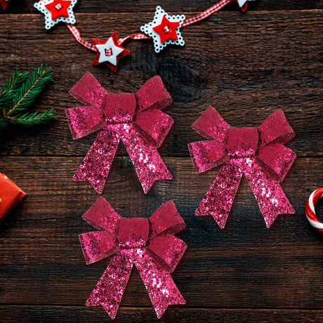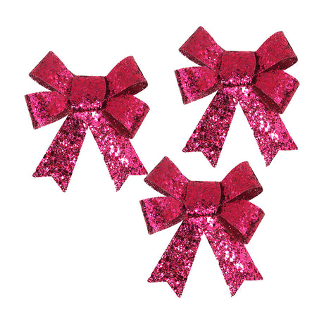 Set de 3 Moños Navideños con Diamantina color Fucsia