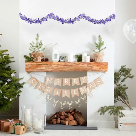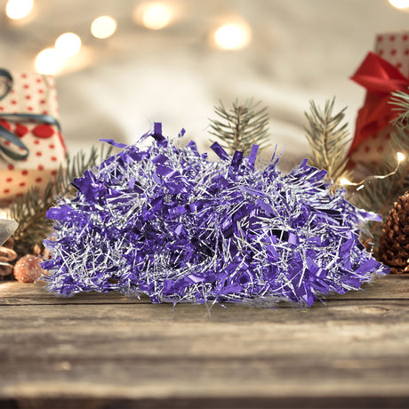 Guirnalda de Escarcha Navideña, Color Morado con Plateado, 3 metros.