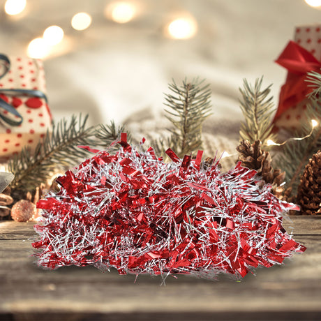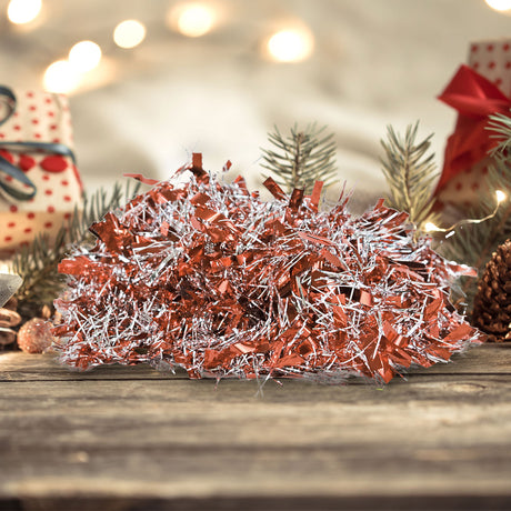 Guirnalda de Escarcha Navideña, Color Rojo con Plateado, 3 metros.