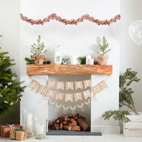 Guirnalda de Escarcha Navideña, Color Salmón con Plateado, 3 metros.