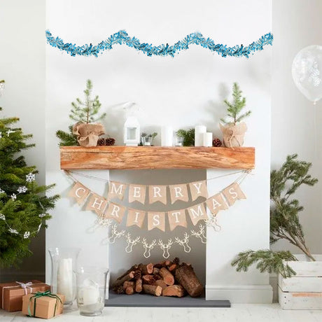 Guirnalda de Escarcha Navideña, Color Turquesa con Plateado, 3 metros.