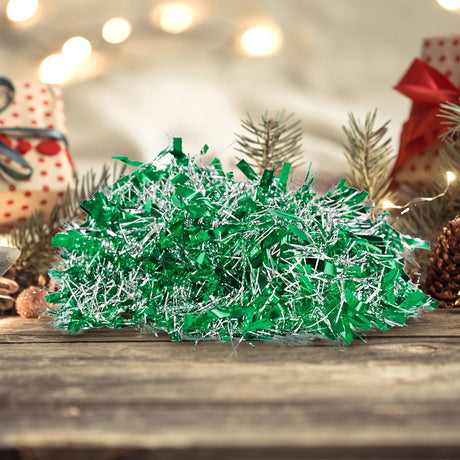 Guirnalda de Escarcha Navideña, Color Verde con Plateado, 3 metros.