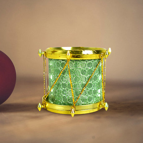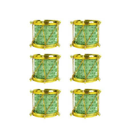 Mini Tamborcitos color Verde para Decoración Navideña, 6 piezas.